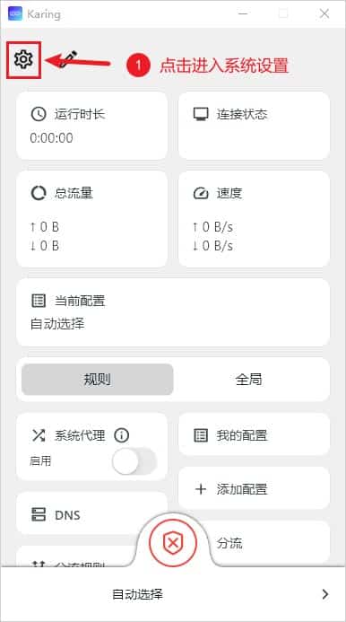 设置开机自动启动,只需要点击软件首页左上角的齿轮图标,如下图所示。
