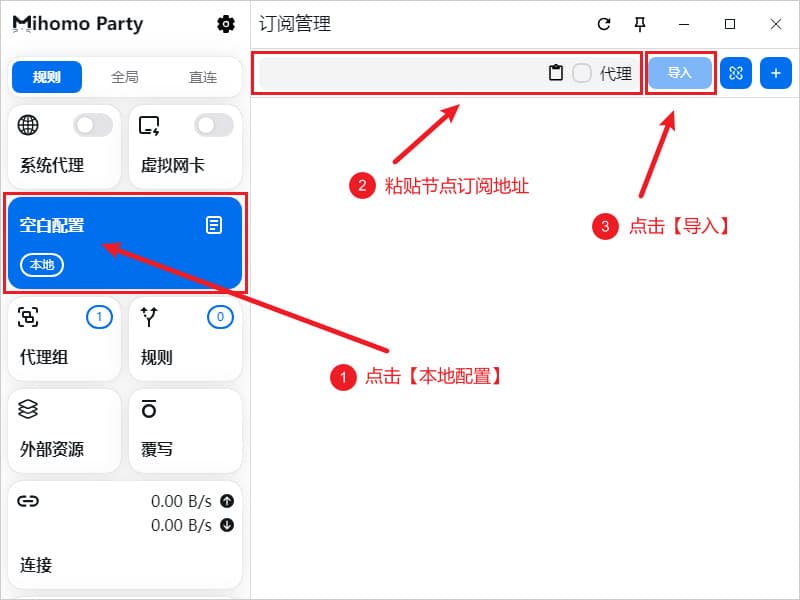 一般情况下,远程订阅地址(URL导入)及本地配置文件(本地文件拖拽导入)都由机场节点服务商提供。